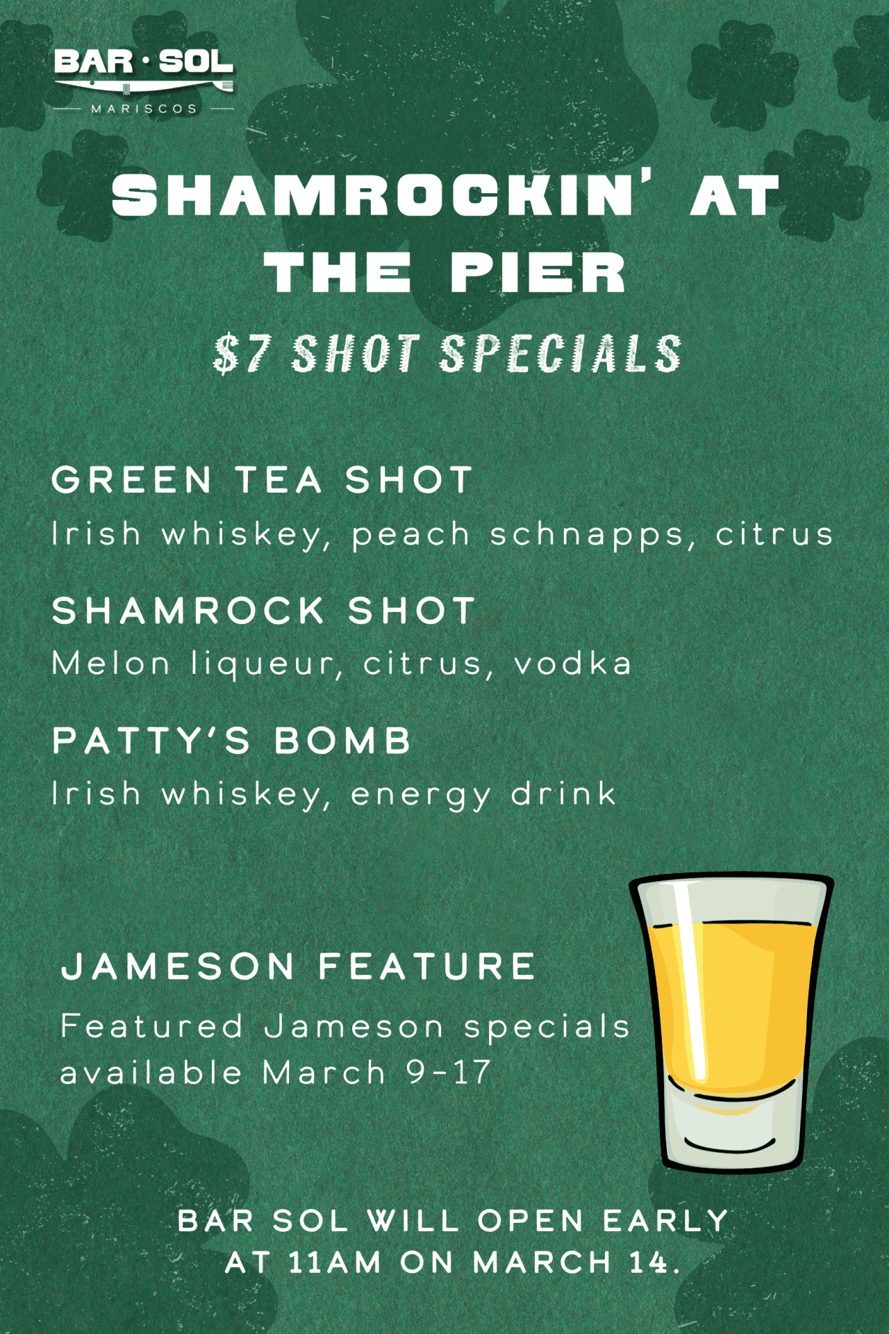 Enjoy half priced wine & draft beer during happy hour at Bar Sol.