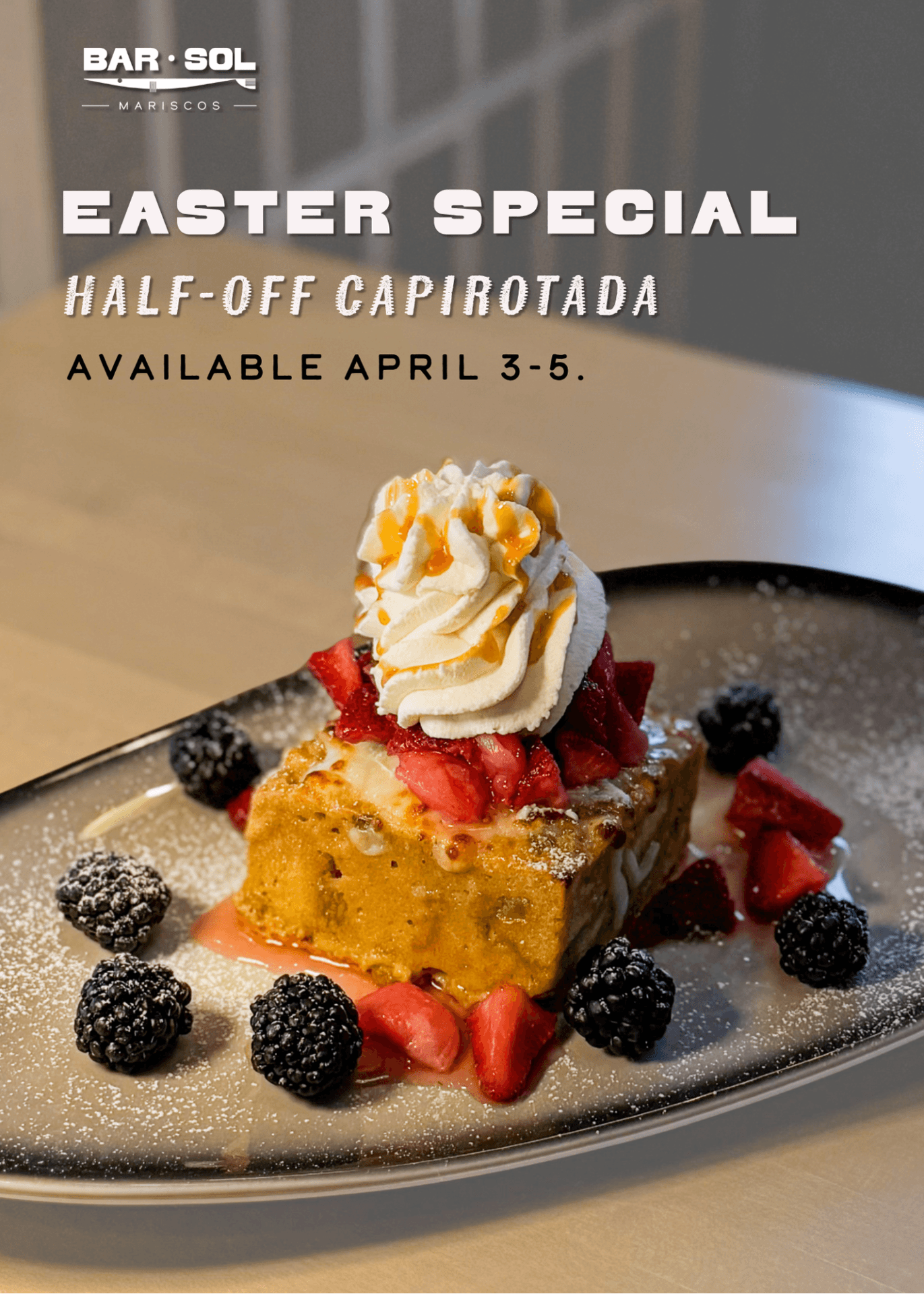 Celebrate Easter with Bar Sol's take on the traditional Mexican bread pudding! Topped with whipped cream, strawberries, and lychee, it’s the perfect springtime treat!